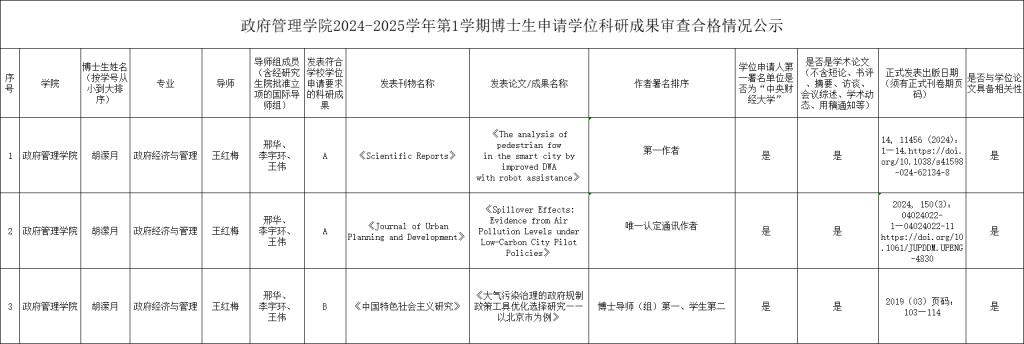 best365网页版登录2024-2025学年第1学期博士生申请学位科研成果审查合格情况公示