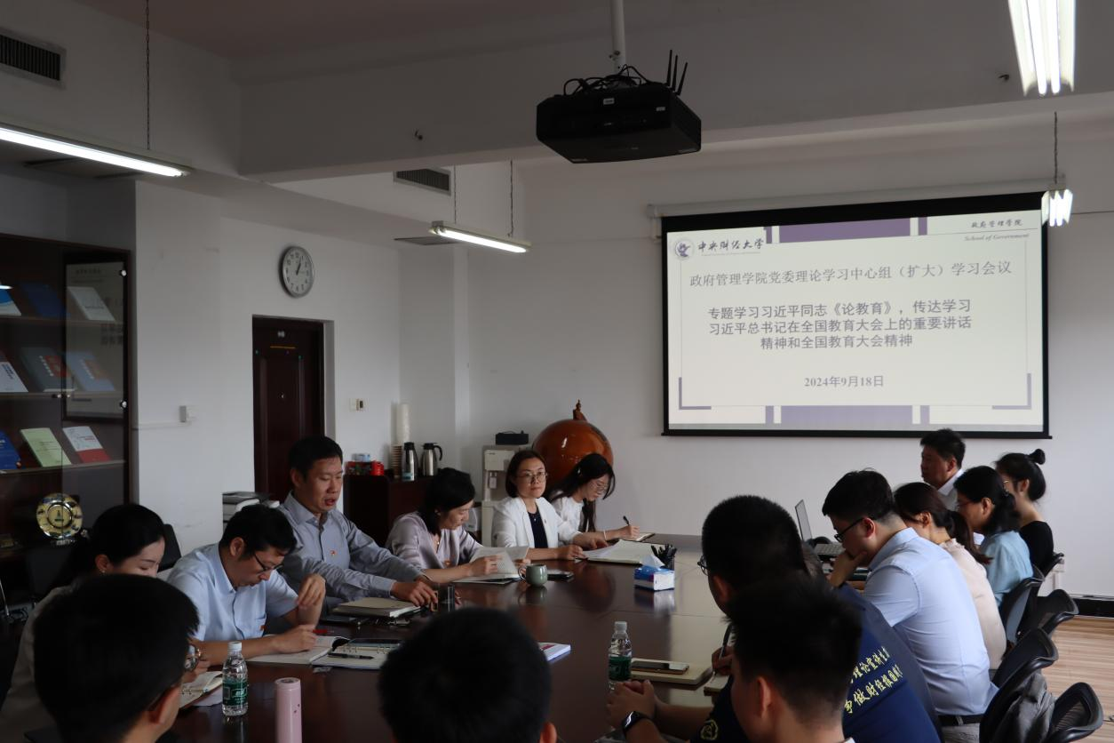 学院副院长李宇环做重点发言。她谈到,习近平总书记的重要讲话高屋建瓴、思想深邃、内涵丰富,要持续深入学习贯彻习近平总书记重要讲话精神和全国教育大会精神,为推进教育强国建设贡献力量。围绕习近平总书记提出的教育强国的思政引领力、人才竞争力、科技支撑力、民生保障力、社会协同力、国际影响力,她重点汇报了高校教师应当“如何培养人”。一是教育的根本任务是立德树人,以强大的思政引领力确保人才培养方向,让公共管理的专业教育与立德树人的目标深度融合,培养出既精通专业知识又具备高尚品德的复合型人才;二是加快推进教育现代化,以强大的人才竞争力赢得国际竞争的主动,学院要深化教育教学改革,创新人才培养模式,全面提高人才自主培养能力,完善学科设置调整机制和人才培养模式,加强交叉学科建设和拔尖人才培养;三是有效推动有组织科研,以强大的科技支撑力夯实高水平科技自立自强的根基,锚定国家战略需求推动学院教育科技人才一体化发展,通过科研与教学的相互促进,不断推动公共管理专业人才培养质量;四是加快教育对外开放格局,以强大的国际影响力为教育事业发展贡献更多力量,统筹好“引进来”和“走出去”,更好地服务于党和国家推进教育现代化、教育强国建设和教育对外开放的大局。