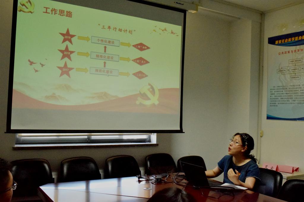 榜样是我们学习的对象、是我们航行的灯塔,引领我们朝着光明的方向驶去。本次活动特别邀请到我院本科生党支部书记李莎莉,与我们分享“先进学生党支部”的创建经验。她介绍了支部科学化管理的特色做法,即将支部建设与自身特点相结合,依据科学化管理的三个层次,制定了支部发展的“三年行动计划”——即规范化建设、精准化建设、个性化建设,把支部工作逐步从“大水漫灌”走向“精准滴灌”。