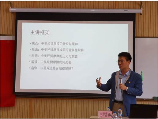 宋亦明校友围绕 “中美经贸关系”这一时政热点话题,向大家重点介绍了中美经贸摩擦的演变过程、具体成因、历史教益、未来去向等重要内容,形象生动地把自己对中美经贸摩擦何去何从的学术思考充分展现出来。宋亦明校友的精彩演讲拓宽了大家对中美经贸关系的认知视野,激发了大家的爱国主义情怀。