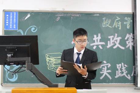 会议第一项,各实践小组代表进行团队成果汇报。本次展示会共有十一个小组分别围绕“明确和发展中国特色社会主义总任务”、“全面深化改革与公共治理”、“修齐治平与治国理政”、“津京冀协同发展”等主题进行汇报。实践主题涉及多个领域,呈现出多样化的特点,体现了公共政策研究性学习的丰富性。各小组通过学习基本理论、聆听讲座、实地调研等多方种式深入了解国家大政方针,体会国家治理思想,培养责任感和大局意识。每个小组展示结束后,白云真老师针对各个小组的展示情况和实践成果给出指导意见。在肯定了同学们的实践成果的同时,白老师也有针对性地指出各个小组在选题、理论结构等方面存在的问题,引导学生深入思考。