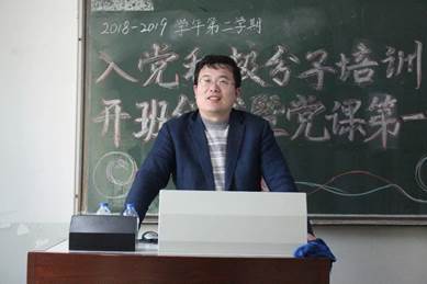 2019年4月3日下午4:00,best365网页版登录2018-2019学年第二学期入党积极分子培训班开班仪式暨党课第一讲在主教学楼409教室准时开始,院党委副书记、党校副校长白云真副教授,院学生工作办公室主任、党校办公室主任张小林老师出席。
