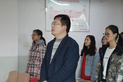 首先,由张小林老师主持开班仪式,全体人员起立,共同唱响国歌。