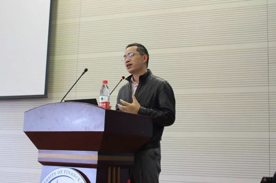 随后,温锋华老师在大家热烈的掌声中登台。温老师首先表达了对2019级同学的祝贺,然后现身说法,以自己及身边人的经历说明进入大学后切换状态的必要性。温老师还提醒同学们在去做自己喜欢的事之前应该先完成本职任务,希望同学们能有所感触,端正态度,踏实学习。紧接着,温老师给同学们送出了励志且正能量的寄语,提出了“九个一”的建议,令同学们受益颇多。
