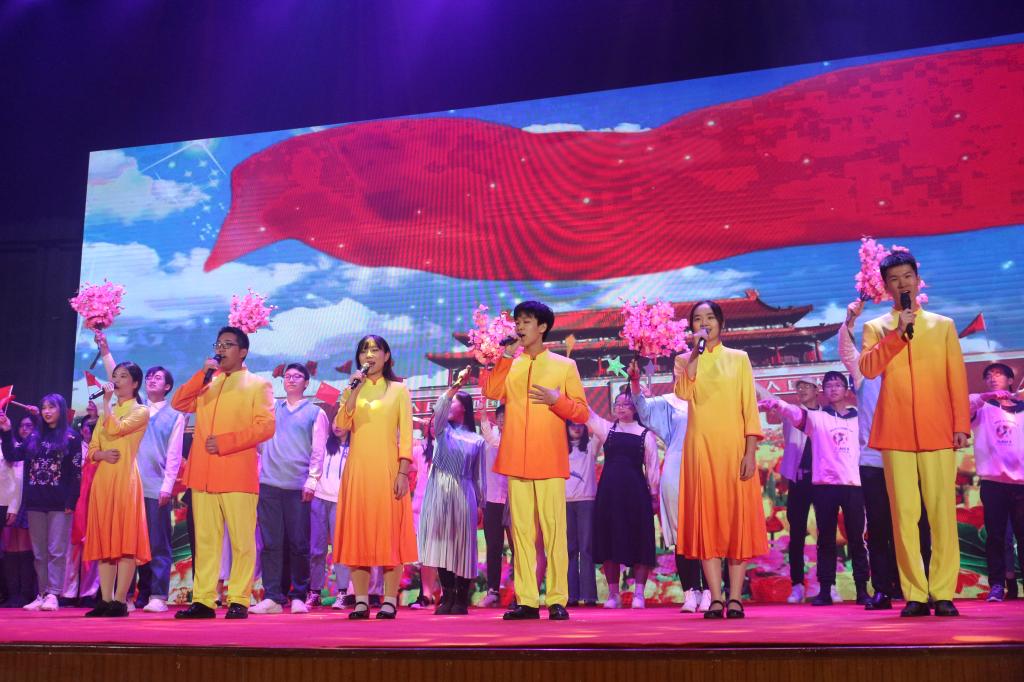 紧张刺激的抽奖环节后后,由公共事业管理18班、城市管理18班联袂带来的节目精彩上演。同样展现中华人民共和国七十年发展史,公共事业管理18班、城市管理18班根据新中国成立70周年的时间线选取了开国大典、一五计划和三大改造、改革开放、香港澳门回归、北京奥运会这几个典型的历史事件来表现祖国的发展历史,表达了同学们对新中国70华诞送上的热切祝福。