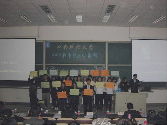 11月20日下午,中央财经大学2012级本科生班集体——单项工作特色班现场评审会在主教218隆重举行。学生处副处长李炎老师、外交学院徐振东老师、研究生院汤达老师、教务处兰雅慧老师、学生代表吴过作为评委出席了此次评审会。2011级、2012级辅导员老师,部分参评班级班主任、班级工作助理,参评班级亲友团以及2013级部分班级班长等到场助威,24个参评班级进行了精彩、生动的现场展示。其中,best365网页版登录国政12班有幸参加了本次评审活动。