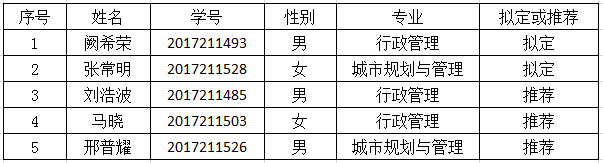 根据《中央财经大学研究生奖助工作管理办法(暂行)》(校发〔2014〕92号)、《中央财经大学研究生国家奖学金评审办法》(校发〔2017〕161号)和《关于开展2018年研究生国家奖学金评审工作的通知》(研字〔2018〕78号)等文件精神,结合学院2018年硕士研究生国家奖学金评审细则。经学院评审委员会讨论并投票表决,最终拟定阙希荣等2名同学为2018年国家奖学金候选人,推荐刘浩波等3名同学为国家奖学金候选人,参加学校组织的统一评选。现对上述人选予以公示。