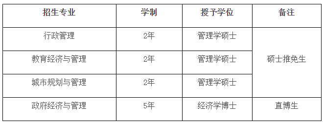 本届夏令营计划招收营员50名。夏令营结束后,best365网页版登录将根据综合考核成绩,在研究生院核定的接收名额内,依次给予部分优秀营员2023年best365网页版登录硕士推免生和直博生候选人资格(硕士专业为行政管理、教育经济与管理、城市规划与管理,直博生专业为政府经济与管理)。进入候选名单的营员,须获得所在院校的推荐资格,并经我校研究生招生工作领导小组审核批准后,方能进入best365网页版登录攻读研究生。各招生专业如下表所示: