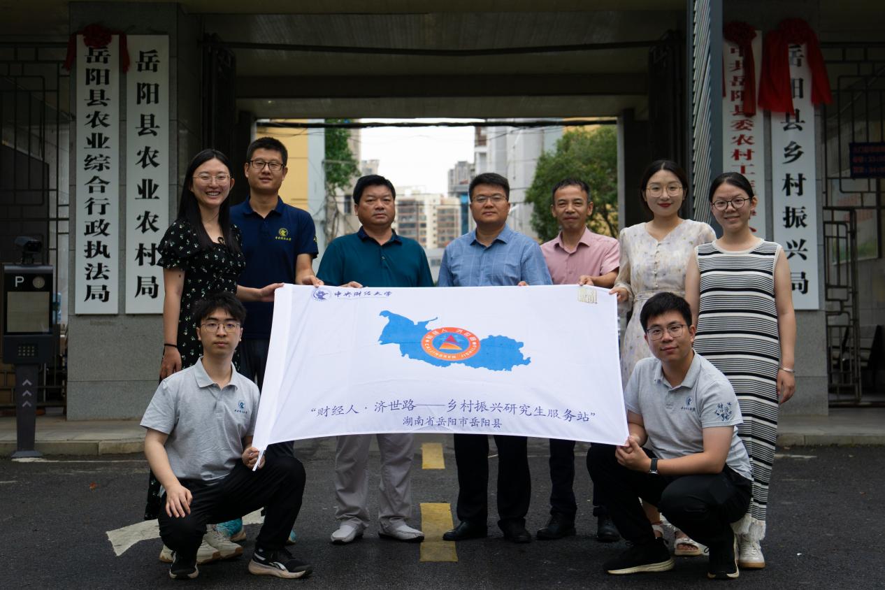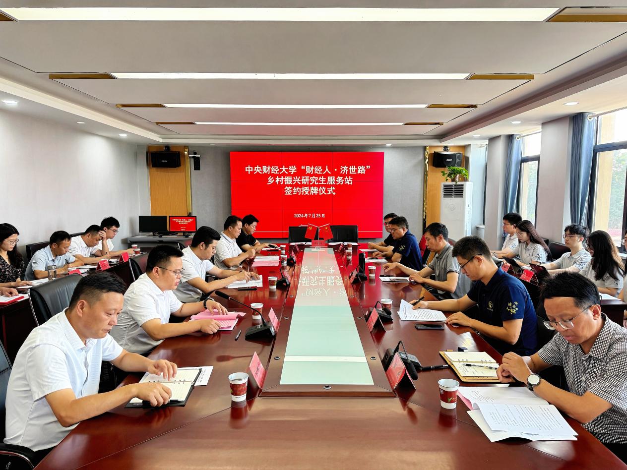 为深入贯彻落实党的二十大精神和中央农村工作会议精神,学习贯彻习近平总书记关于教育和“三农”工作的重要论述,进一步做好巩固拓展教育脱贫攻坚成果同乡村振兴有效衔接,在乡村振兴中“受教育、长才干、作贡献”,2024年7月25日,中央财经大学“财经人·济世路”乡村振兴研究生服务站授牌仪式在湖南省岳阳市岳阳县黄沙街镇隆重举行。岳阳县委常委、副县长贺立,岳阳市农业农村局副局长殷俊,岳阳市农业农村事务中心主任陈细兵,岳阳县农业农村局局长梁亿仲,岳阳县农业农村局副局长陈兵良,黄沙街镇党委书记吴进,黄沙街镇镇长张鹏飞以及best365网页版登录党委书记于鹏教授,研究生院学位办公室副主任赵志超老师,best365网页版登录公共事业管理系周湘林副教授出席仪式。全体研究生服务站成员参加仪式。仪式由岳阳县农业农村局局长梁亿仲主持。