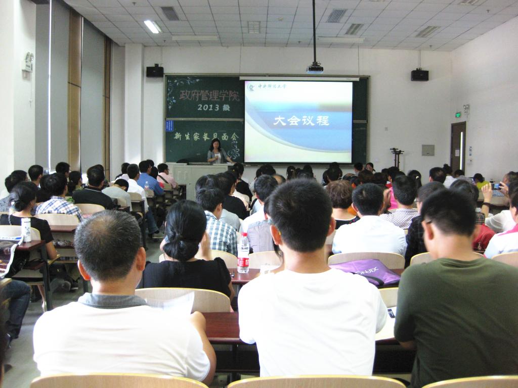 首先在班会上,团总支书记孙帮谦、国政13班主任张云雷、行管13班主任孙静、公管13班主任吕阳、城管13班主任陈红霞以及陈建煜、张颖新、卞灵杰、任丽蓉四位班级助理依次与大家打招呼。然后就近期的日程安排,包括新生演讲比赛、军训服装定制、开学典礼等活动做了详细介绍,还就户口迁移、选择临时联络人等事项做了具体说明,同时也对新生们提出了一些要求与期望。