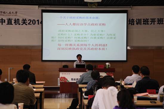 2014年5月18日,我院徐焕东教授应中共中央直属机关事务管理局(简称中直机关事务管理局)邀请,做了题为《实现政府采购科学化若干问题》的专场报告,听课对象为中共中央直属机关事务管理局司局长培训和处长培训班两班学员。徐焕东教授从政府采购的范围、制度体系、功能作用及实现科学化目标等不同方面,系统地讲述了政府采购科学化的必要性和主要途径,获得学员普遍欢迎。