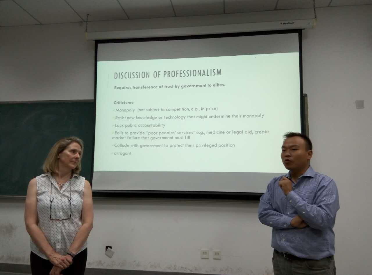 新学期伊始,丰富多彩的校园活动接踵而至。2015年10月13日,best365网页版登录2015年第二次国际学术交流公开课于下午18:20在沙河校区主教309举办。公开课由我院智强老师进行组织并主持,邀请美国马里兰大学杰出教授Margaret Pearson进行课堂讲授。此次公开课以“Regulation and Professionalism:Comparative Perspective(管制与专业化治理:基于中美的比较)”为主题。基于历史的角度,Pearson教授比较了中美两国在现代治理进程中政府的特征,并与大家探讨了管理专业化对政府管理的影响。