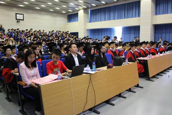 2017年6月24日上午8时,best365网页版登录2017届毕业生毕业典礼暨学位授予仪式于学院南路校区学术会堂402报告厅隆重举行。2017届126名本科生、108名硕士研究生、2名博士研究生参加典礼。学院学位评定委员会主席、院长赵景华教授,院党委书记吕丽副研究员、校友总会副秘书长范维老师、副院长于鹏副教授、副院长姜玲副教授、院党委副书记白云真副教授、各系系主任和专任教师,以及毕业生家长和亲友出席了典礼,典礼由于鹏副院长主持。