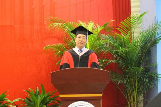随后,赵景华院长在热烈的掌声中致辞。首先,赵院长对毕业生们表示热烈的祝贺,对毕业生的父母、师长、亲人和朋友致以崇高的敬意和衷心的感谢!在过去的几年中,同学们和学院共同成长。在大学的校园里,同学们收获了知识和友情,增长了才干和智慧,磨练了意志和能力,这些成长都让学院倍感欣慰和骄傲。同时,学院也与同学们在共同成长,优势学科的成果和影响力更加突出,教师教学水平和人才培养质量持续提升,同时,学院在学科建设和师资水平等方面也取得了长足的进步。在2017年广州日报大学一流学科排行榜中,我院公共管理已挤身于全国一流学科行列。此外,各种品牌活动的规模不断扩大,国际学术会议、中国政府战略与公共政策论坛等活动的连续举办,国家级学会专业委员会在我院的落户,相关书籍、期刊的出版和发行等,都彰显了我院学术水平的不断提升和国内外影响力的显著扩大。院长指出,同学们正处在一个变革的时代,开拓创新是这个时代赋予同学们的使命。赵院长结合全球政治经济军事格局的深度调整以及我国“五大发展理念”、“一带一路”等发展理念与国家战略,向毕业生们提出了三点嘱托:要胸怀国家,勇于担当,传承“中央政府”使命的种子,树立更为远大的人生目标;不畏艰辛,踏实奋斗,心怀“中央政府人”自强不息、踏实奋斗的精神,坚韧不拔、勇往直前;严于律己,行之有道,秉持“中央政府人”的浩然正气、坚守正义、坚守责任、坚守法治。同时,院长也希望所有的毕业生能够践行“中央政府人”的若水精神,保持一颗平和、善良、包容的心,追求更高层次的境界。最后,院长寄语在座同学:不论今后选择怎样的道路,希望同学们牢记“正气浩然,上善若水”的院训,让政管精神始终流淌在自己的血液中,成为有理想、有勇气、有规矩的开拓者和创新者!学院也永远是同学们坚强的后盾和温暖的港湾!