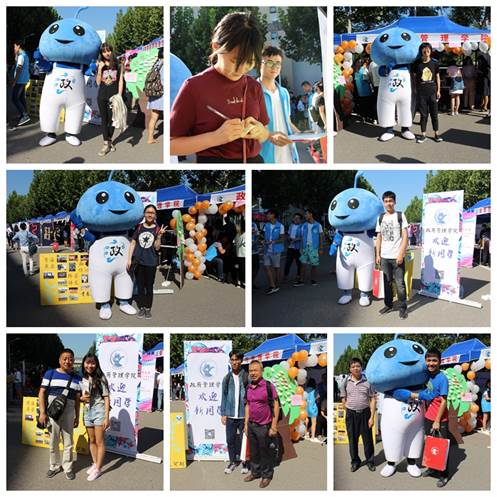 best365网页版登录迎新工作处,摆放着制作精美的展板和易拉宝,展示着我院丰富多彩的学术、文娱活动,彰显着政管学子昂扬向上的精神风貌。一旁的新生留言树上贴满了新生的寄语:初入大学的激动,畅想未来的期待,内心的忐忑……迎新现场最受人瞩目的便数政管吉祥物“政宝”了,可爱的布偶造型一下子就吸引了大家的目光,新生们争先恐后地和政宝合影,留下报到当天值得纪念的一刻。