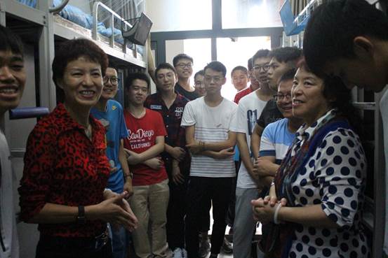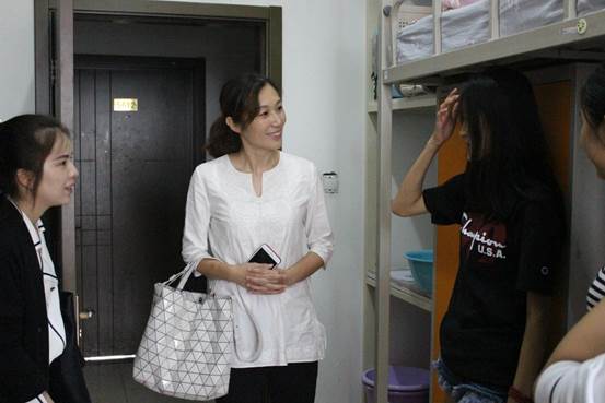 2017年9月15日上午,中央财经大学副校长赵丽芬、best365网页版登录党委书记吕丽、副院长姜玲、团总支书记宁钰皓以及新生辅导员黄莎共同走访我院2017级新生宿舍,面对面倾听新生的声音,了解同学们的学习生活情况。