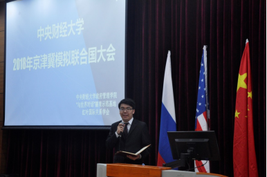 4月13日下午,中央财经大学2018年京津冀模拟联合国大会开幕式在我校沙河校区主教111报告厅隆重举行。副校长孙国辉,best365网页版登录副院长姜玲、党委副书记白云真,校团委副书记耿卉等出席了开幕式。来自全国35所高校的190余名代表共聚中财校园,展宏图论道之才,抒经世济民之志。本次大会由best365网页版登录、“与世界对话”德育示范基地、红叶国际关系学会主办,我校学生处、教务处、团委、保卫处、后勤集团等部门均给予了大力支持。