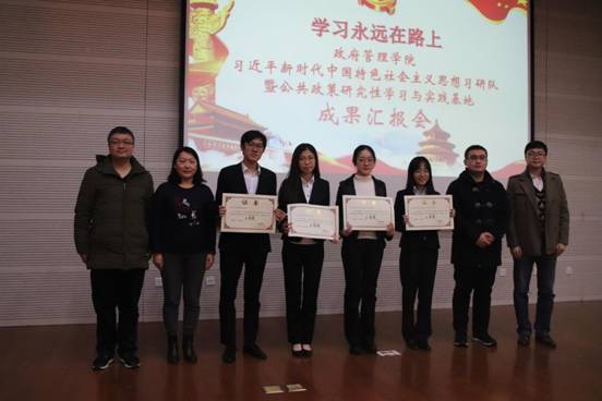 小组展示结束后,柴铎老师和白云真老师先后对各习研小组做出点评和总结。柴铎老师谈到,在改革开放四十周年之际,公共管理学科赢来了盛世。这次活动的初衷是让同学们切实感受到新时代大背景下的改革趋势,使同学们深刻领会到改革对于实现中华民族伟大复兴的重要意义。他希望同学们能够坚定自己的理想信念,通过本次活动,增进对本专业的价值认知,更好的投身于祖国的发展建设。随后白云真老师从文化力、道德力、理解力、行动力、共生力等“五力”做出总结。白老师勉励同学们不断深入学习贯彻落实党的十九大精神,学习习近平总书记系列重要讲话,将理论与实践相结合,知行合一,做一名新时代的青年。他期望同学们在本次活动中能够提高自己的政治素养和学术素养,希望大家结合自身新时代大学生的特点增强对习近平新时代中国特色社会主义思想的理解,也希望每一位同学能有更多的学习和实践成果,在今后的研究性学习中,一步一个脚印,结出丰硕成果,谱写新篇章,铸就新辉煌。