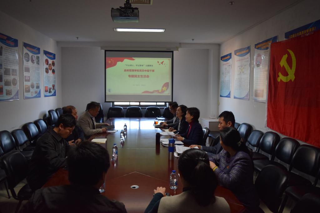 12月5日上午,政府管理学员党员中层干部“不忘初心、牢记使命”专题民主生活会在中财大厦932会议室召开,学院领导班子全体成员参加会议,校党委书记何秀超、学校“不忘初心、牢记使命”主题教育联络指导组第五组组长研究生院院长张学勇、第五组组员组织部田晓江出席会议。会议由学院党委书记吕丽主持。