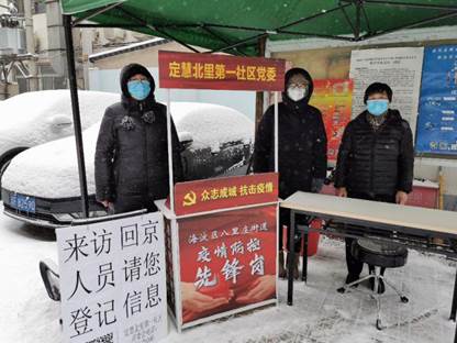 风雪无情,人有情。best365网页版登录2018级mpa学生刘洁璇充分发挥党员作用,准时到达对接社区,大雪中坚持值守,协助社区开展疫情防控工作。做好回京及来访人员登记,张贴重要通知告示,帮助清理道路积雪,给出入社区人员测量体温。