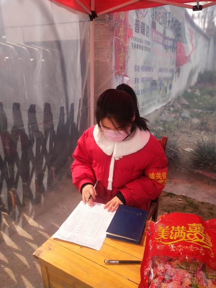 2019级学术研究生李嘉欣充分发挥党员先锋带头作用,积极响应社区号召,首先参与社区人员摸底排查工作。挨家挨户走访,登记相关家庭成员信息,确保不少一家、不漏一人,快速、保质的完成工作;其次在排查结束之后将成员信息全部归纳录入排查系统,便于信息化管理;最后做好社区出入人员信息登记工作,并做好体温测量。