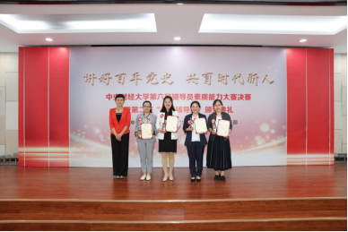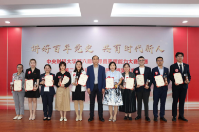 6月10日下午,中央财经大学“讲好百年党史,共育时代新人”第六届辅导员素质能力大赛决赛暨第二届“最美辅导员”颁奖典礼在学院南路校区落下帷幕。经过激烈角逐,我院本科生辅导员李莎莉荣获大赛二等奖、“最美辅导员”荣誉称号;本科生辅导员尹燕斌荣获大赛三等奖、“最美辅导员”荣誉称号;研究生辅导员张鑫媛荣获大赛优秀奖;best365网页版登录荣获大赛优秀组织奖。