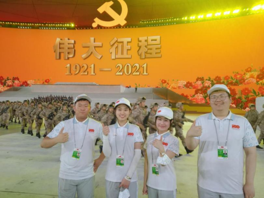 我院刘博雅、王卓娅、赵治涵、于泽洋4名同学作为志愿者团队成员“庆祝中国共产党成立100周年文艺演出《伟大征程》”志愿服务工作,全心全意完成站点执勤、人员引导等服务工作,参与保障演出顺利进行,圆满完成了党和国家交予的光荣任务。