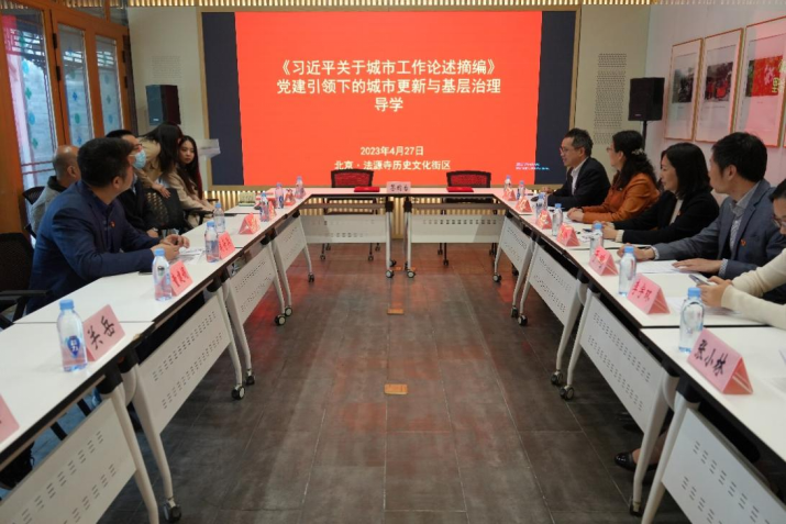 4月27日下午,best365网页版登录专题读书班成员、党委理论学习中心组(扩大)一行走访北京宣房大德置业投资有限公司(以下简称“宣房大德”)。围绕“党建引领下的城市更新与基层治理”主题,开展学习贯彻习近平新时代中国特色社会主义思想主题教育联学联建。联学中,宣房大德规划前期部副经理陈庆红女士详细汇报了党建引领法源寺历史文化街区城市更新项目的成功案例,宣房大德充分履行国企社会责任,展现国企责任担当,围绕服务首都“四个中心”建设,以改善民生福祉、保护历史文化、完善街区功能、提升街区活力为核心目标,坚持党建引领、坚持联建联动、坚持为民服务、坚持机制创新,实现了法源寺历史文化街区的健康发展。学院MPA教育中心副主任、城市管理系温锋华副教授作《习近平关于城市工作论述摘编》领学导读。他谈到,习近平总书记关于城市工作的重要论述,立意高远,内涵丰富,思想深刻,明确了城市发展的价值观和方法论,深刻揭示了中国特色社会主义城市发展规律,深刻回答了城市建设发展依靠谁、为了谁的根本问题,以及建设什么样的城市、怎样建设城市的重大命题,为新时代做好城市工作指明了前进方向、提供了根本遵循,深入系统学习《习近平关于城市工作论述摘编》,对我们更好的理解新时代我国城市工作的方向,结合我院实际扎实开展城市更新、城市治理等领域研究具有重要意义。随后,与会人员围绕研学主题开展了深入研讨。姜玲院长发言指出,城市更新不仅是城市开发建设方式的转变,也是城市治理特别是基层治理的进一步深化,是形成有中国特色的基层治理体系的重要部分。于鹏书记发言指出,深化党建引领基层治理,聚焦城市更新重点工作,是全面贯彻落实党的二十大精神和习近平总书记关于城市工作重要论述的生动实践。加强基层党的建设、巩固党的执政基础是贯穿城市更新与基层治理、基层建设的一条红线,要充分发挥基层党组织的领导核心作用,夯实基层社会治理根基,全力打造共建共治共享的基层治理新格局。与会人员先后参观了法源寺历史文化街区红色会客厅、街区智慧停车场、人才公寓共生院落等项目,开展了生动的实地研学。