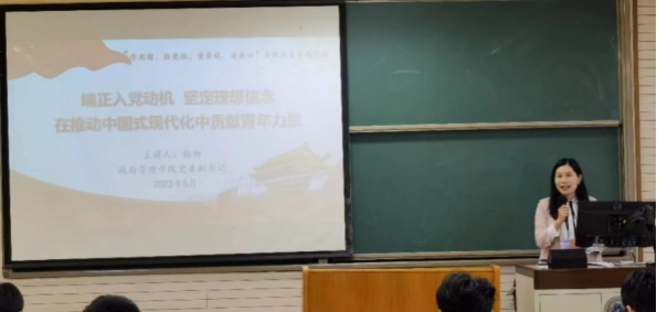 5月17日下午,best365网页版登录党委副书记杨柳在主教218讲授以“端正入党动机、坚定理想信念,在推动中国式现代化中贡献青年力量”为主题的专题党课,best365网页版登录2023年第一期入党积极分子培训班的全体学员参加了党课学习。