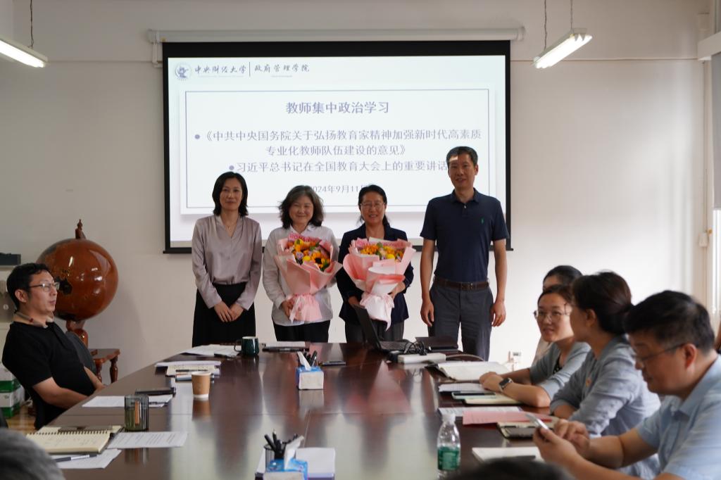 恰逢第四十个教师节之际,学院为从教30年的张小燕老师、任郑莲老师举行庆祝仪式,学院党委书记于鹏、院长姜玲代表全院教职员工为两位老师送上鲜花并致以诚挚的祝福和感谢。